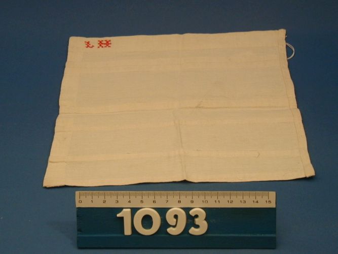 | Beschrijving | : | Lap met machinaal ingezette stukken vervaardigd als leerstuk, met initialen LHin het rood gebroduurd, gemaakt voor het examen kleding vervaardigenin 1920 |